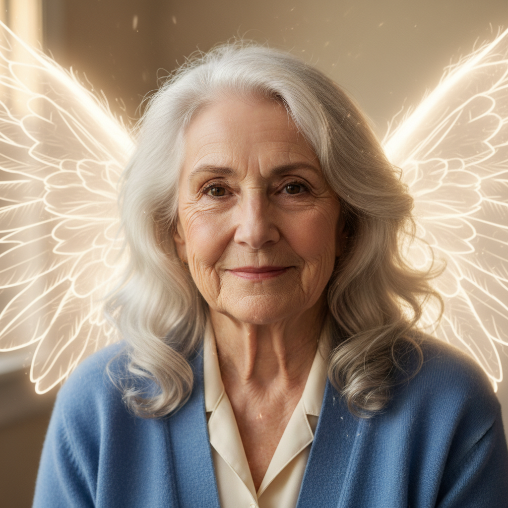 "I created an angel wings photo of my grandmother for her memorial service. The soft, glowing wings behind her made everyone cry - it was exactly how we imagine her now, watching over all of us." @HealingHeart_Maria