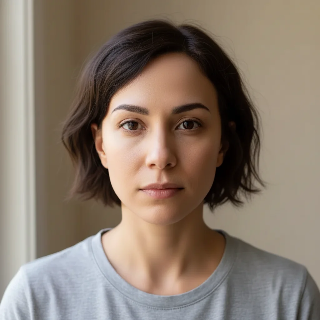 Check that the hair looks natural at the hairline, the color matches expected lighting, and the texture is consistent throughout. Look for realistic shadows where hair meets the face and shoulders.