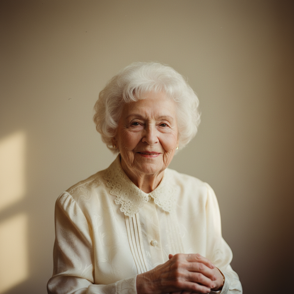 A treasured portrait given a soft golden halo for her memorial service, symbolizing the warmth she brought to the family.