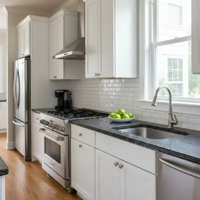 Subway tile, herringbone, hexagon, penny round, zellige, encaustic cement, marble slab, stacked stone, glass mosaic, shiplap, beadboard, and more. Name the tile type, material, and color — the AI renders it accurately in your kitchen.