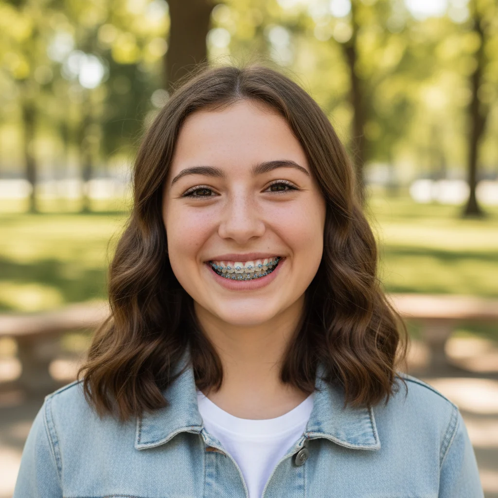 Removed full metal braces from a teenage smile, revealing natural teeth beneath with realistic results.