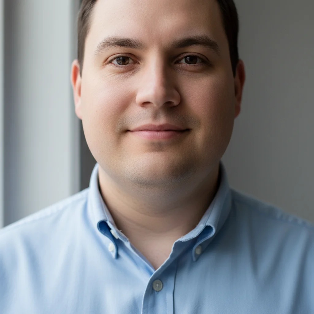 A portrait with an undefined jawline enhanced to a sharper, more structured look for professional use.