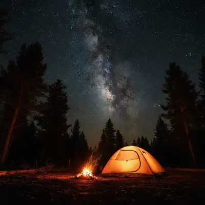 It depends on your scene's location. Remote wilderness with no light pollution: 'dense star field with thousands of visible stars'. Rural areas: 'moderate star density'. Suburban or near cities: 'sparse stars with some light pollution'. The key is matching star count to realistic viewing conditions. More stars isn't always better—it needs to make sense for the location.