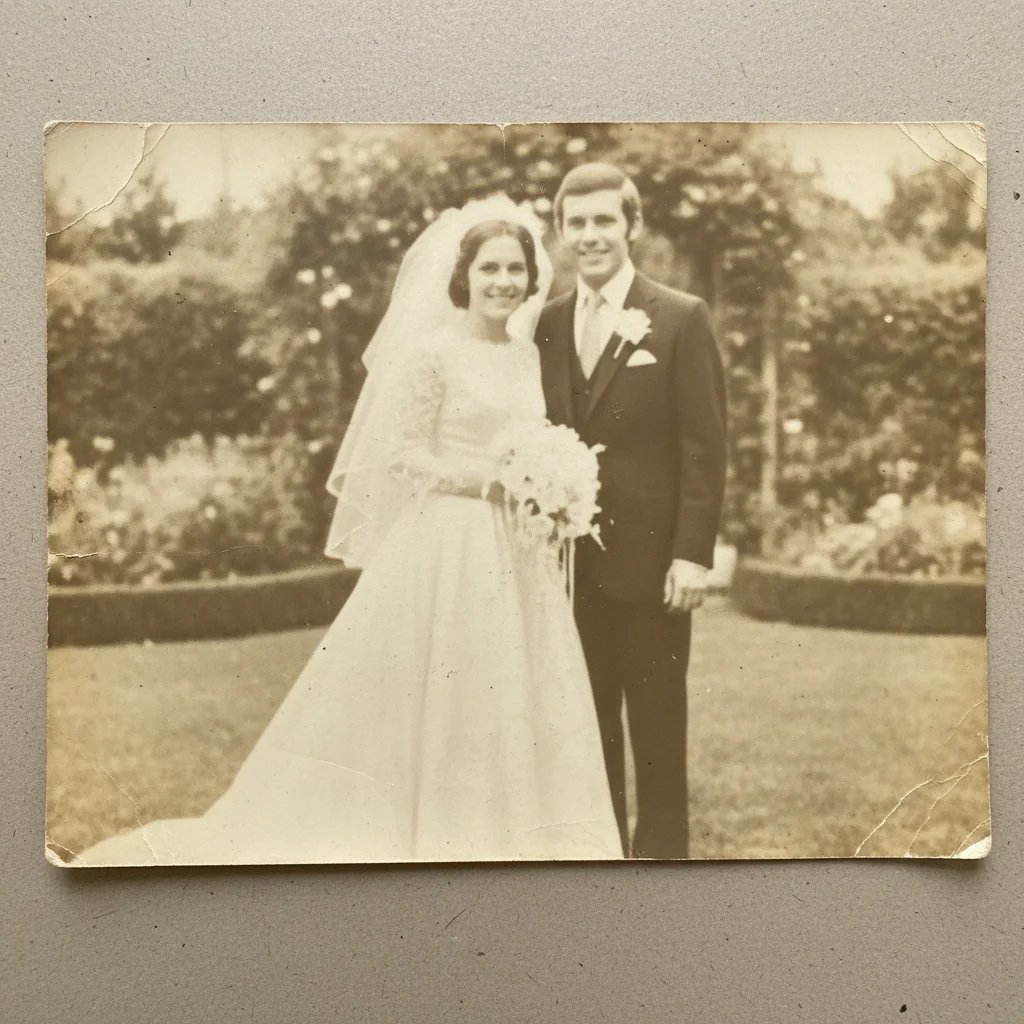 Your choice. Fading and damage are deterioration, not authentic parts of the memory. If you want to display these photos at milestone anniversary celebrations, print them large, or include them in tribute videos, restoration honors your decades together better than showing damaged faded versions. The memories deserve beautiful preservation.
