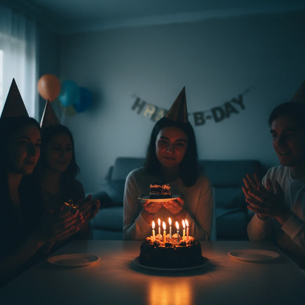 Birthday party shot without flash in dim room. Faces were barely visible until one prompt recovered all the detail.