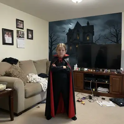 Absolutely. The AI can detect multiple people and preserve all costumes while changing backgrounds or adding effects. Try 'add foggy graveyard behind the group' or 'enhance all costumes and add spooky lighting.'