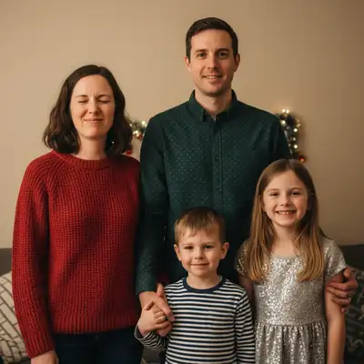 Use the prompt 'fix all the blinks and get everyone looking at camera' - the AI detects every face and opens all closed eyes in one edit. Works on family groups of any size.