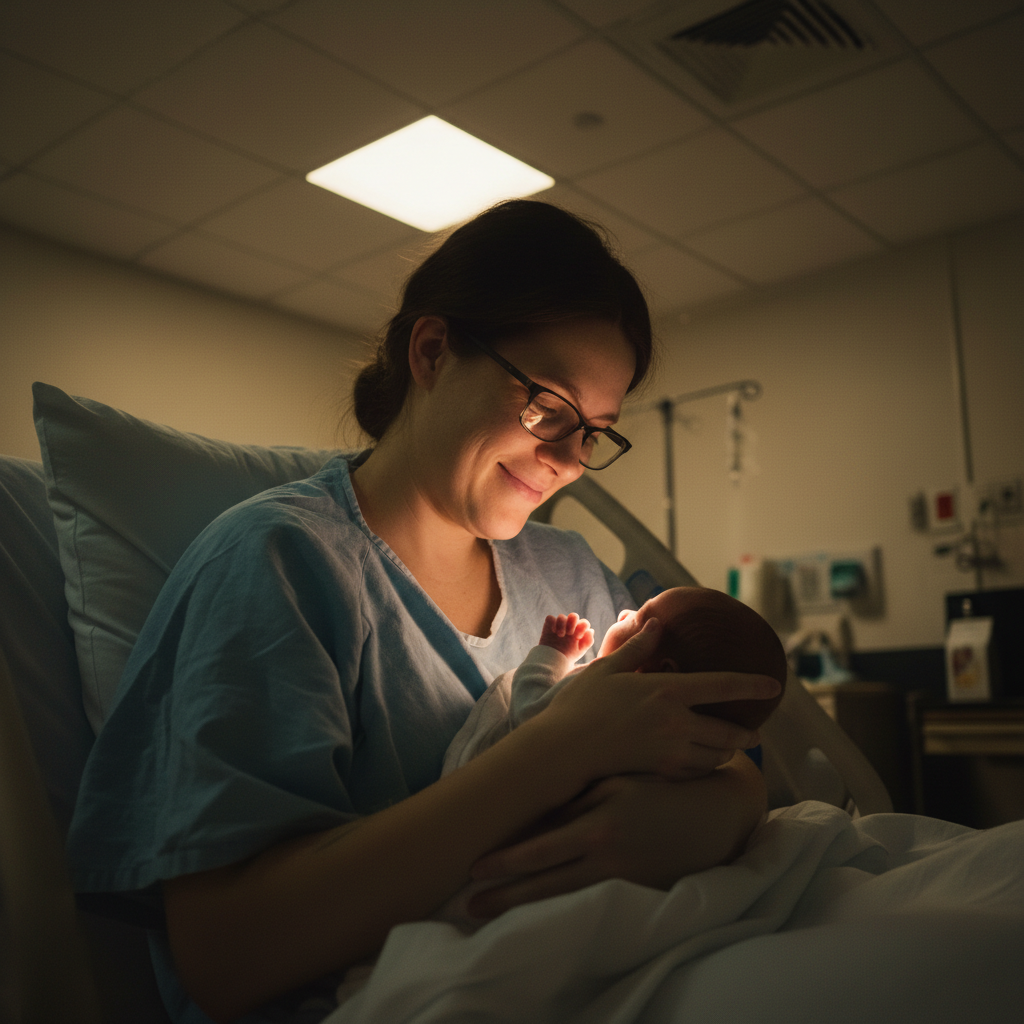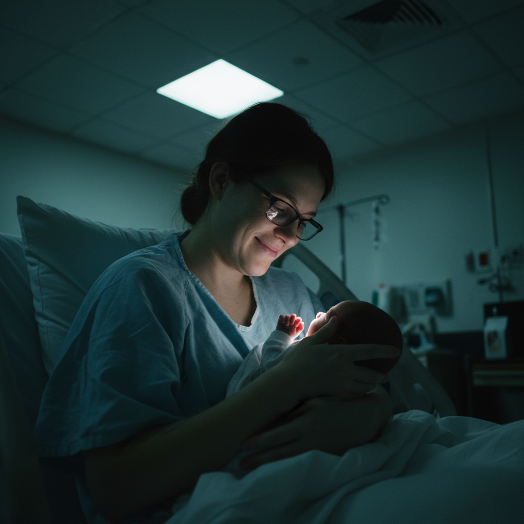 Drop your hospital photo into EditThisPic and describe the enhancement: 'soften the harsh hospital lighting, warm up the colors for natural skin tones, keep baby's features and our expressions exactly as they are.' Be specific about what to change while emphasizing what to preserve.