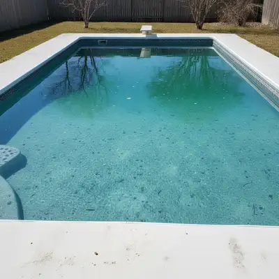 Match your market and pool type. Resort pools: deep sapphire blue. Tropical vacation rentals: light turquoise. Natural swimming pools: blue-green. Describe the shade in your prompt: 'deep resort blue' or 'light Caribbean turquoise.'