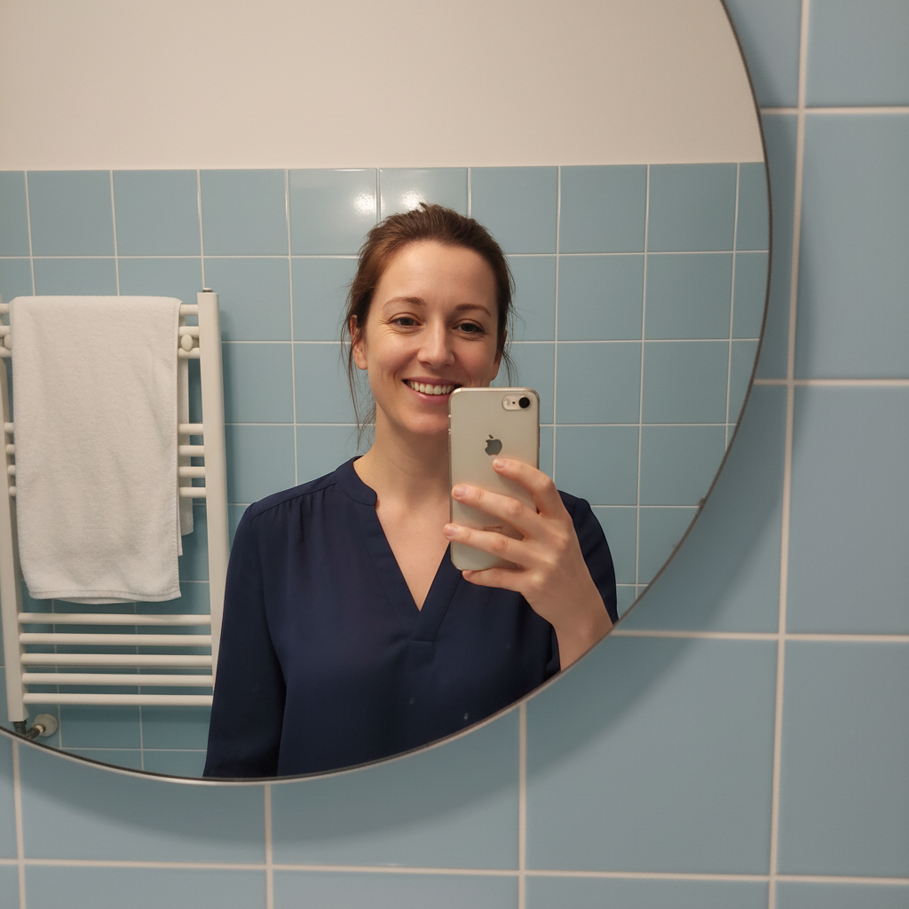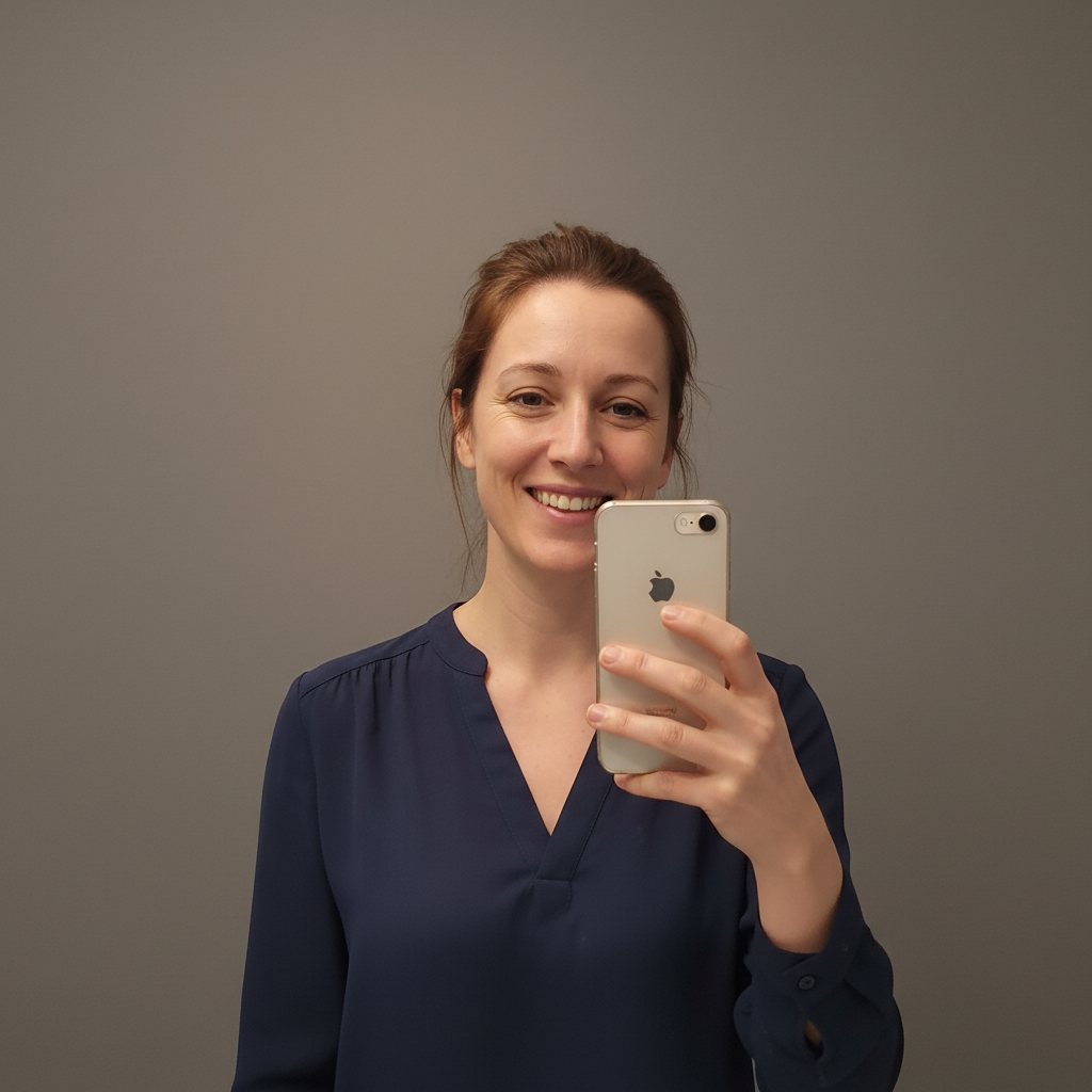 Your phone selfie might actually be your best photo - natural expression, comfortable smile, authentic you. The only problem is the bathroom mirror in the background and the harsh overhead lighting. EditThisPic fixes exactly that: professional background, studio-quality lighting, same genuine you. No need to feel awkward in front of a stranger with a camera.
