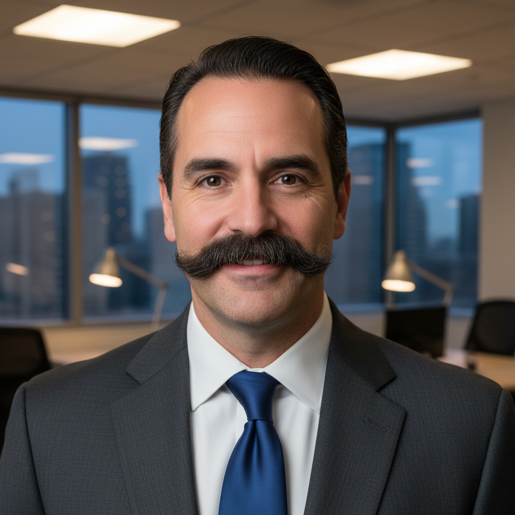 Removed a thick dark mustache for an updated LinkedIn profile photo. Clean-shaven result looked natural and professional.