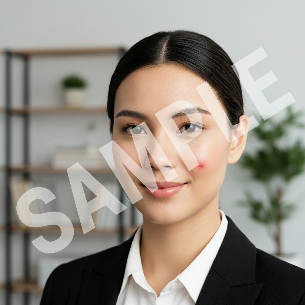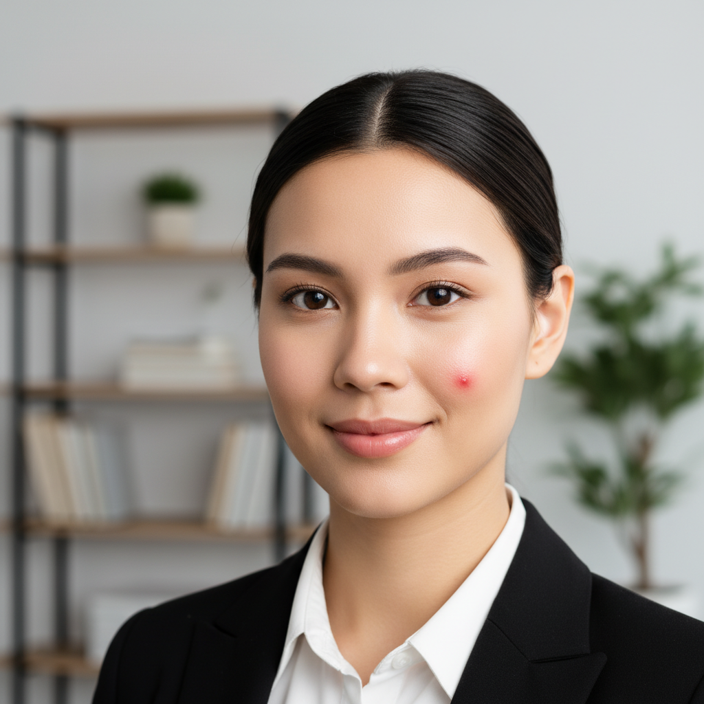 Visible red pimple on cheek before a job interview. Removed cleanly while keeping natural skin texture.