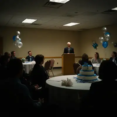 Your choice. These photos commemorate a career and will be kept forever—in memory books, tribute videos, farewell presentations. If poor lighting or venue limitations make the photos not worthy of the milestone, fixing them honors the retiree better. You're not changing what happened, just making the documentation worthy of decades of service.