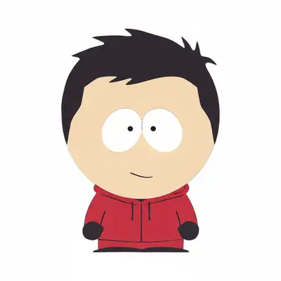 South Park uses a distinctive crude construction paper cutout aesthetic - round heads, simple oval eyes with dot pupils, flat colors without gradients, and intentionally simple shapes. EditThisPic captures these specific elements, not just generic cartoon conversion.