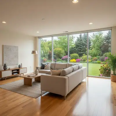 The AI attempts to match lighting but may need guidance. If your room has soft, diffused interior light, specify 'overcast garden' or 'soft daylight.' For bright rooms, you can request 'sunny view.' Check that shadows and light direction in the room are compatible with the new view's implied sun position.